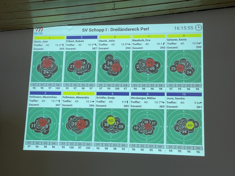 perfekten 400 Ringen, Lena mit 392 und Julia mit 388 Ringen zu einem 3:2.