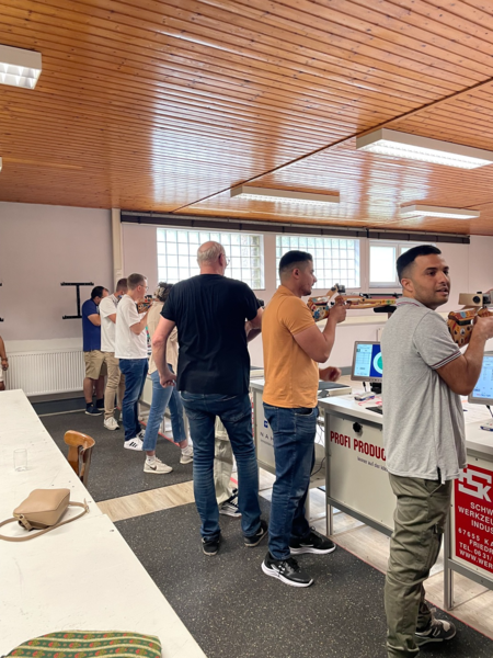 Gleich 40 Führungskräfte von Amazon in Kaiserslautern trafen sich im Kobertal um ihr alljährliches Teamevent durchzuführen. Drei Stunden lang stand Kleinkaliber, Luftgewehr oder das Bogenschießen auf dem Programm. Mit viel Ehrgeiz wurde teilweise so lange getestet bis dann endlich die 10 getroffen war. Mit fachkundiger Anleitung konnten alle in die verschiedenen Schiessdisziplinen reinschnuppern. Wer weiß, vielleicht haben wir ja das Interresse am Schiesssport geweckt und wir sehen den ein oder anderen im Schützenhaus wieder. Rundum für uns, wie für die Amazonmitarbeiter, ein gelungener Samstagnachmittag.