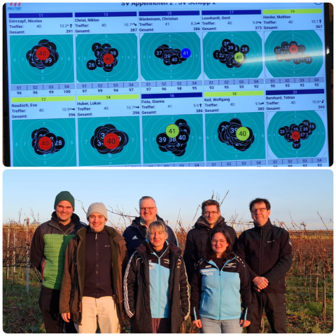 Gegen den SV Appenhofen 2 stand es nach der regulären Schießzeit 3:1 für Schopp. Spannend wurde es auf Position drei. Zwischen Gianna Fiola und dem Appenhofener Wiedemann Christian kam es zu einem Stechen. Gianna bewies Nervenstärke und entschied dieses Stechen für sich. Somit hieß das Endergebnis 4:1 für Schopp. Herausragend die Ergebnisse von Naudsch Eva und Huber Lukas, die beide ihre Matches mit hervorragenden 396 Ringen gewannen.