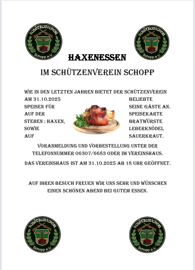 Bei sehr schönem Wetter konnte der Schützenverein Schopp sein diesjähriges Sommerfest im Freien und im neuen Zelt feiern, das von einem Gründungsmitglied übergeben wurde. Dabei wurde auch die neue Sitzgarnitur, die von R. Schulz gespendet wurde, eingeweiht. Diesen tollen Sommertag nutzten viele Besucher und kamen auf das Gelände des Schützenvereins, um mitzufeiern. Auch die Kleinkinder kamen zu ihrem Recht und konnten sich auf dem freien Platz voll austoben. Bei kühlen und warmen Getränken konnten sich die Erwachsenen stärken, bevor sie beim Glücksschießen in der Halle an den Start gingen. Wie in den letzten Jahren wurde auch in diesem Jahr auf die Preise Jagd gemacht. Ausgeschossen wurden 4 Serien. Somit hatten wir 4 Preisträger, die nachdem Schießen ihre Trophäe in Form eines Preises bekamen. Am Abend kam es wie angekündigt zum Spanferkelessen, das alle Gäste begeisterte. Wer dieses Jahr das Sommerfest des SV Schopp verpasste, kann sich mal das Sommerfest 2025 vormerken. Dieser Termin wird jetzt schon geplant. Beim SV Schopp heißt es nach dem Sommerfest ist vor dem Sommerfest. Schließen möchten wir diesen gelungenen Tag mit einem großen Dank an alle Helfer und Kuchenspender, ohne die solch eine Fete nicht möglich wäre.